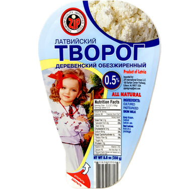 Latvian Cottage Cheese "Village Style" 0.5% Fat, Zip, 250 g/8.8 oz