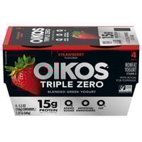 Oikos Triple Zero, Yogurt, Nonfat, Blended Greek, Strawberry Flavored, 4 Pack