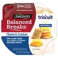 Sargento, Balanced Breaks, Cheese & Crackers, Gouda & Sharp Cheddar Cheeses/Triscuit Mini Original Crackers, 3 Pack