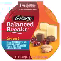 Sargento, Balanced Breaks, Sweet, Cheddar Cheese/Milk Chocolate Chunks/Dried Cranberries & Graham Crackers, 3 Pack