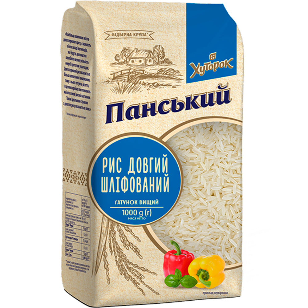 Long-Grain Ground Rice, Pansky, 1 kg/ 35.27 oz Long—grain ground rice is a popular type of rice with elongated white grains.