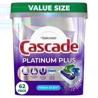 Cascade Platinum Plus Dishwasher Pods, 62 Count
