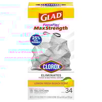 Glad, ForceFlex Plus - Drawstring Bags, Kitchen, Tall, Max Strength, Lemon Fresh Bleach Scent, 13 Gallon