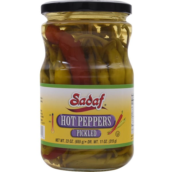 Hot Peppers Pickled Sadaf Hot Peppers Pickled are a great condiment to add to your dish or enjoy on the side. This spicy pepper will sure heat up any delicious dish. Ingredients: Hot Peppers, Water, Salt, Acetic Acid and Citric Acid. Kosher: Star K Product of Turkey