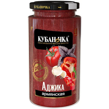 Armenian Adjika, Kubanochka, 500g/ 17.64oz Kubanochka's products are of impeccable quality, ahead of the majority of both domestic and global manufacturers. The production uses exclusively high-quality raw materials, as well as environmentally friendly and safe packaging materials. Only the most modern equipment from the world's best brands is used in all technological processes.