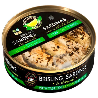 Brisling Sardines in Olive Oil with Lemon and Basil, Brivas Vilnis, 160g/ 5.64oz