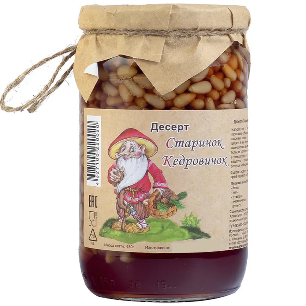 Cedar Nuts in Pine Syrup "Old Man Kedrovichok", Samsonov, 430g/ 15.17oz A natural product that harmoniously combines the taste and benefits of cedar nuts and pine cone syrup.