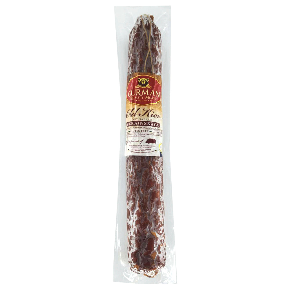 Dry Salami Ukrainskaya «Old Kiev», Gurman, 500g/ 17.64oz Dry salami with fat inclusions is emphasized by spices and cognac to reflect its classical taste.