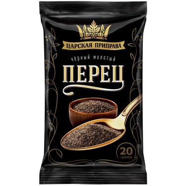 Seasoning Ground Black Pepper, Royal Seasonings, 20g/ 0.71oz Ground black pepper is one of the most popular and versatile seasonings in the world. It has a strong aroma and rich taste, which is great for many dishes. Black pepper is obtained from the fruits of the black pepper plant, which grows in India, Indonesia and other countries.
