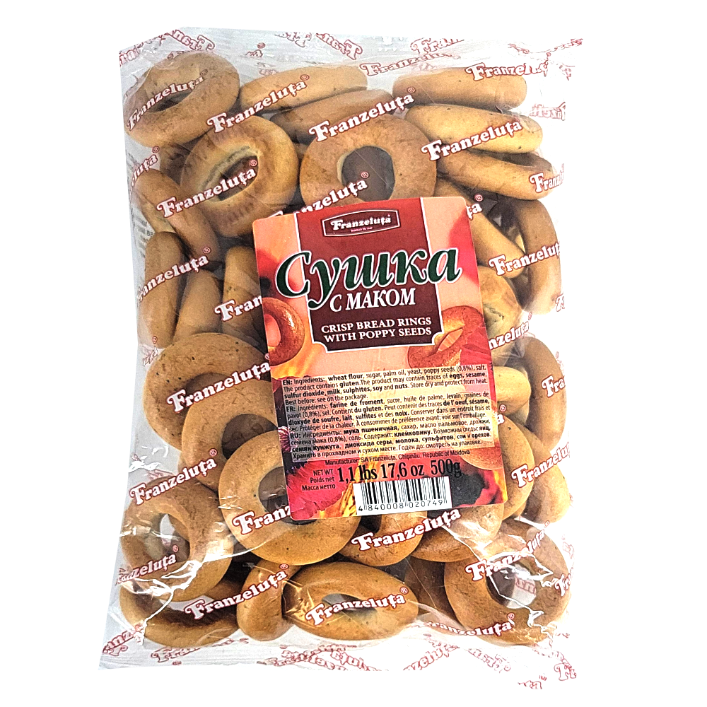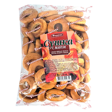 Sushki Hard Bagels with Poppy Seeds, Franzeluta, 500g/ 1.1lb Sooshka - what could be easier? It seems that they have been around for ages, decorate the table and show a commitment to traditions that have lost their relevance in our age.