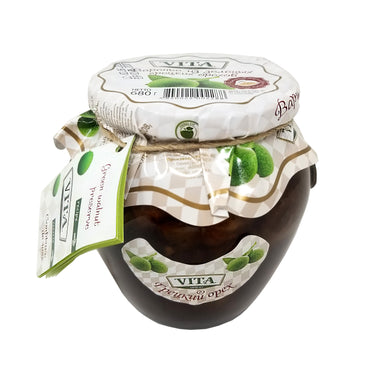 Walnut Preserve, 23 oz/ 680 g Walnuts are a good source of protein, dietary fiber, copper and manganese. They have high fat content but no cholesterol. Walnut preserves have a pleasant and distinctive taste. Great Price at BalPary Russian Iranian Afghans Iraqi Arab Mediterranean Middle East Products Online App and Free Delivery More description and ingredients will be soon. Thanks for your understanding.
