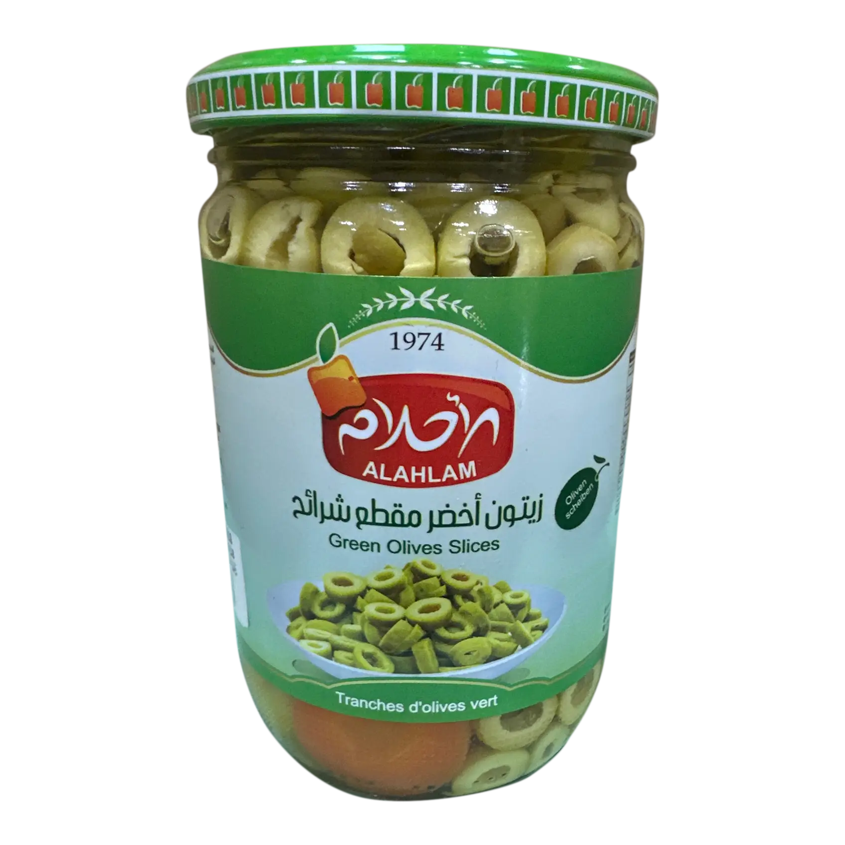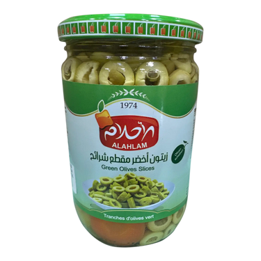 Alahlam Green Olive Slices, 1 ct Great Price at BalPary Russian Iranian Afghans Iraqi Arab Mediterranean Middle East Products Online App and Free Delivery More description and ingredients will be soon. Thanks for your understanding.