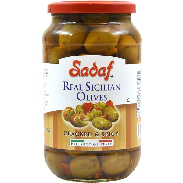 Настоящие сицилийские оливки Sadaf | Треснувшие и острые - 12 унций.