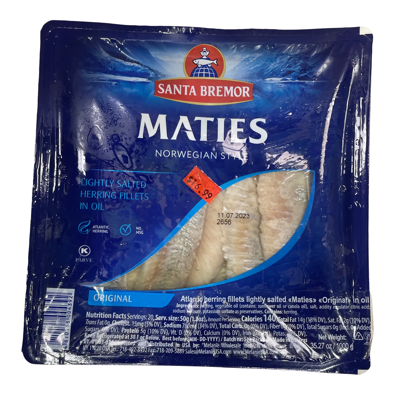 Филе сельди слабосоленое в масле по-норвежски «Санта Бремор Матиес», 1 шт.